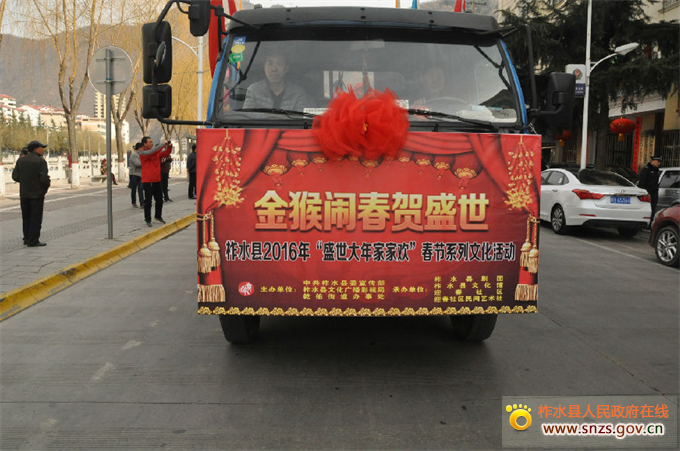 柞水县2016年“盛世大年家家欢”春节文化惠民系列活动由柞水县委宣传部、文广局、乾佑街道办事处主办,县剧团、迎春社区、迎春社区艺术社等单位承办,为群众精神文化生活提供优质的文化盛宴。通过实施系列惠民、为民、乐民的文化服务项目,开展内容丰富、形式多样、干部群众乐于参与的文艺活动,大力营造欢乐祥和的节日氛围,丰富城乡人民群众的春节文化生活,